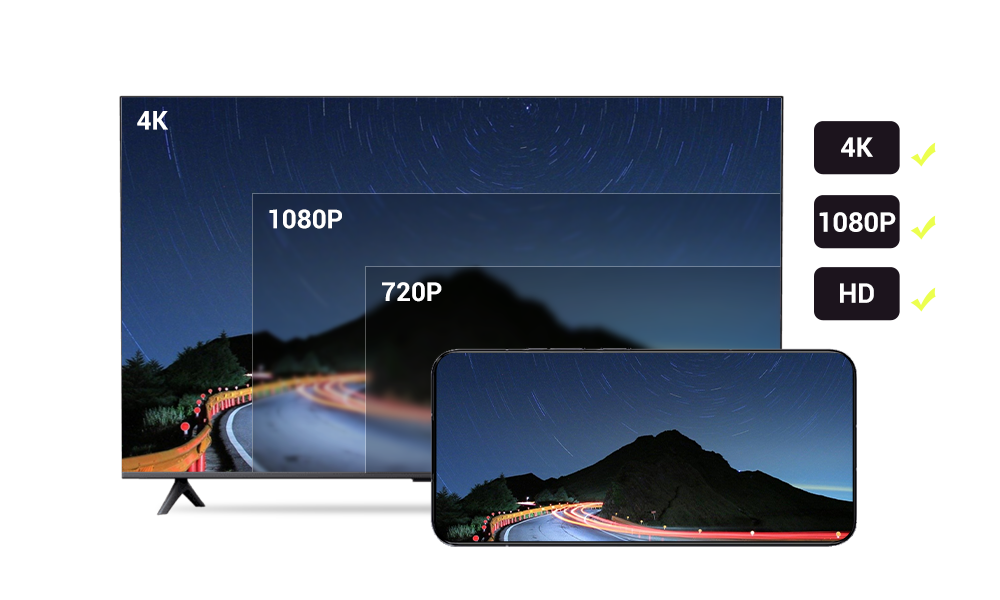 Alta resolução: 720p, 1080p e 4K, proporcionando uma experiência de vídeo superior